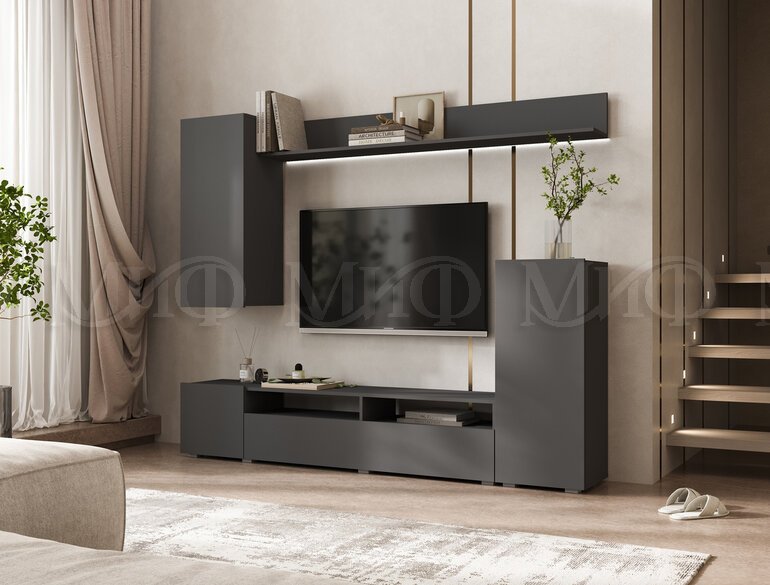 Гостиная Верона16400 ₽Материал: МДФ/ЛДСП. Цвет: Графит, Дуб крафт/Графит, Кашемир. Ширина: 2130 мм. Высота: 1704 мм. Глубина: 346 мм.Заказать