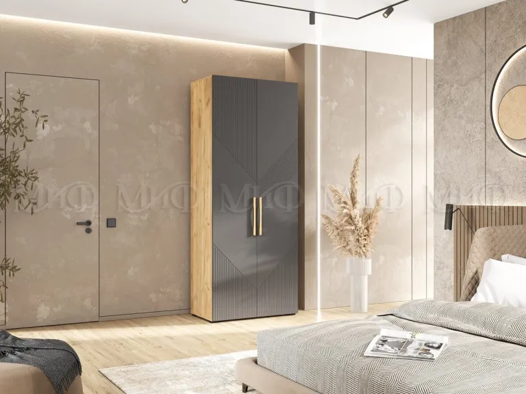 Данная коллекция дополнена добротными натуральными деревянными ручками. Материал МДФ. Цвет:Браш Вайт/Дуб Крафт, Графит/Дуб Крафт, Браш Мени Грин/Дуб Крафт, Кашемир. Ширина 900 мм. Высота 2236 мм. Глубина 506 мм.